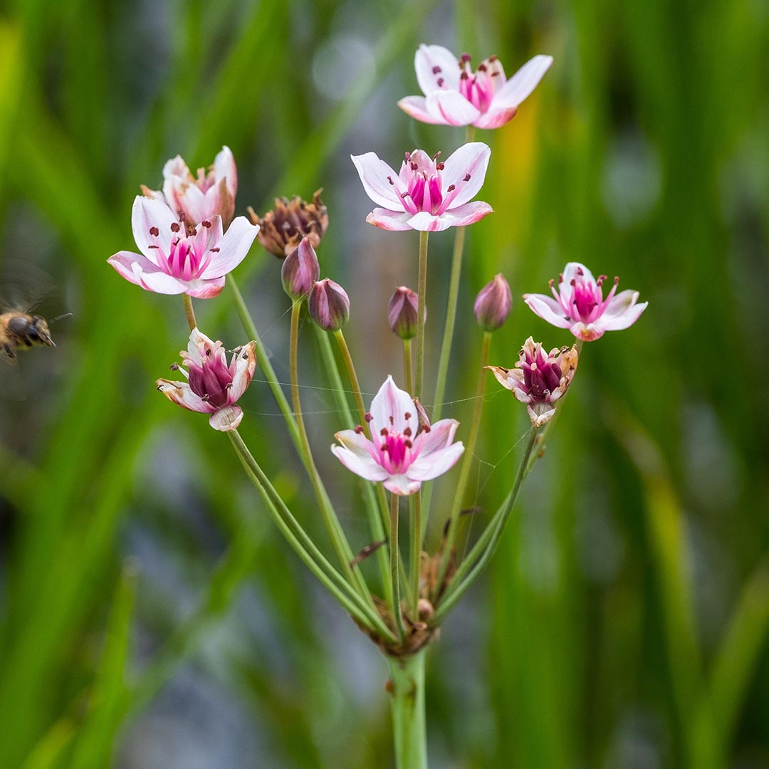 Butomus umbellatus is a herbaceous perennial which is native to UK. The foliage mature to an emerald green and the flowers appear in an organized ball shap. It has twisted grassy leaves & stiff stems bearing umbels of fragrant rosy-pink flowers 2cm in width. It performs well in full sun. It can be quite useful in helping to naturally filter water and prevent sediment erosion, as well.