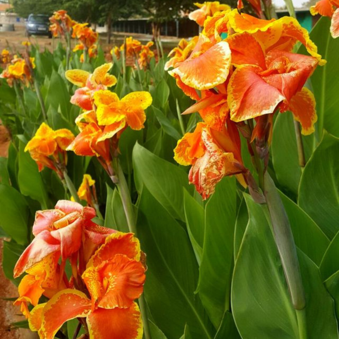 Canna phasion is a recipient of the prestigous Award of Garden Merit of Royal Horticultural Society. It produces vibrant ornage flowers and dramtic foliage of large, lance shaped, outrageously coloured foliage with pink veins fading to orange. It performs well in full sun.