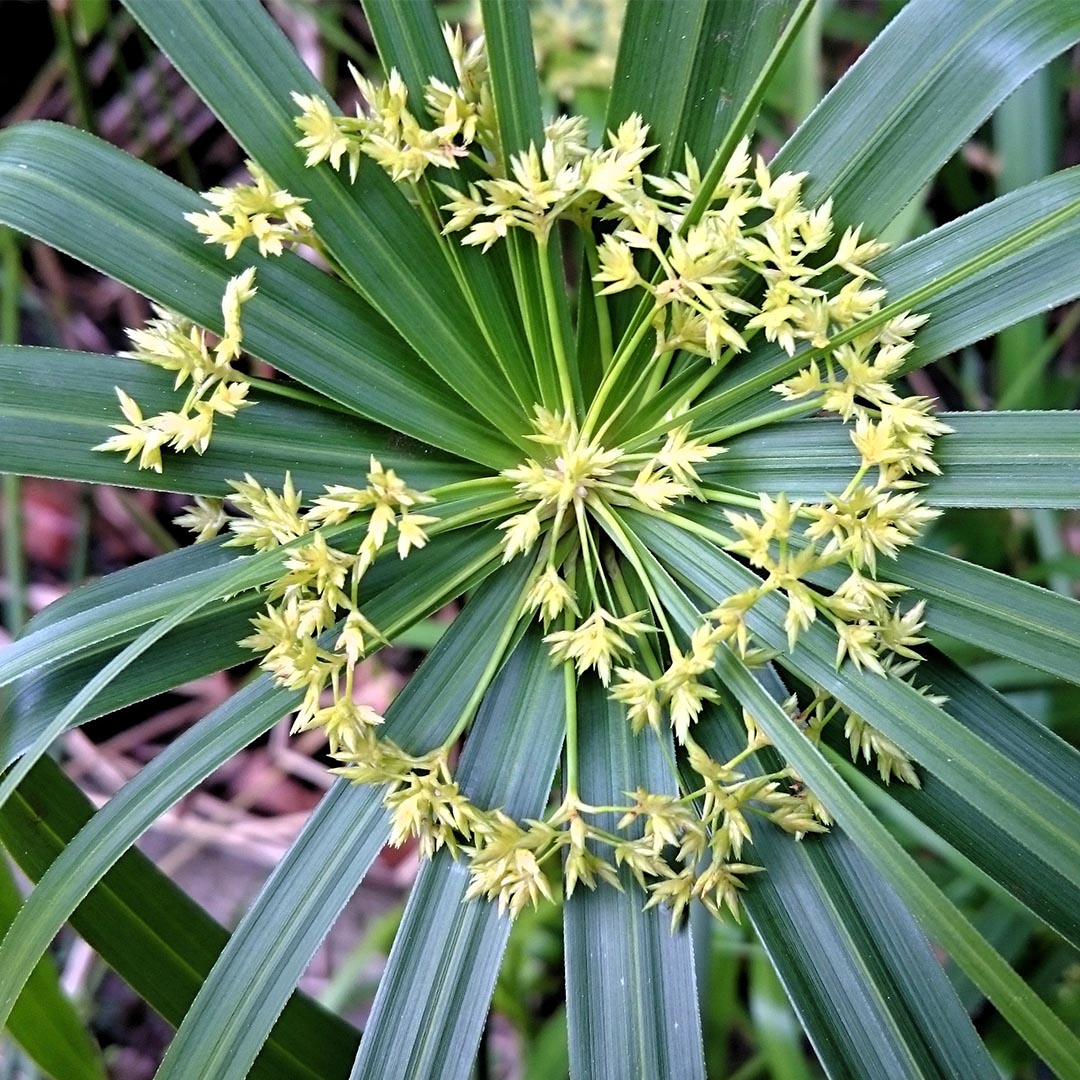 Cyperus alternifolius is an ornamentally grown plant that adds an exotic & tropical feel. It is known for its showy- umbrella shaped rosette, green modified leaves called bracts. Its leaves are inconspicuous found near the stem bases. It also has insignificant flowers & fruits. It has dense clusters of flattened flower spikelets. It performs well in full sun to partial shade.