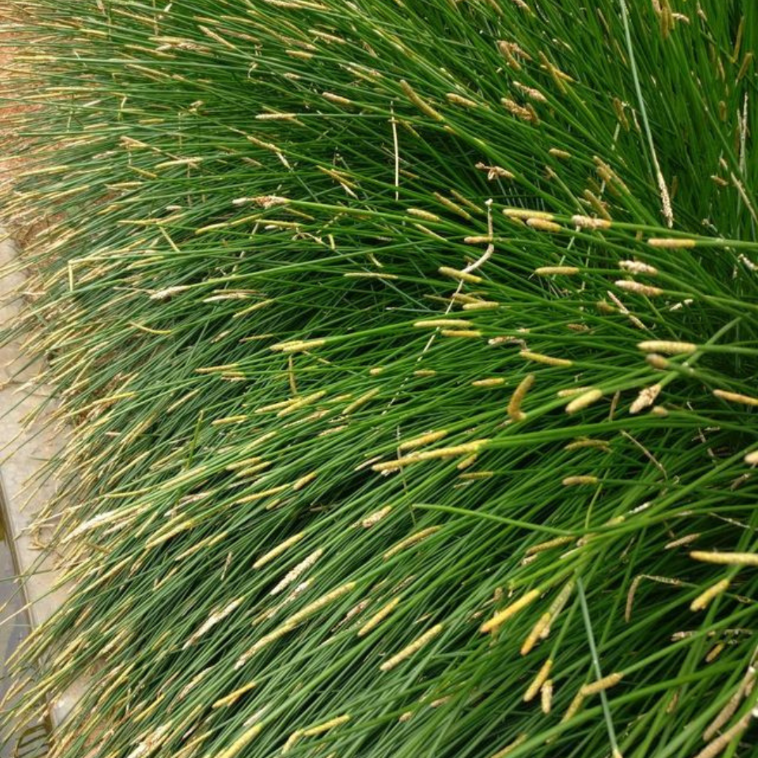Eleocharis sphacelata is a perennial plant with a hollow stem. The foliage is mid to dark green in colour often with reds at the base of tsems. It produces small sized flowers cream to brown colour spikes that appear on the tips of the leaves. It performs well in sun. It is a very hardy plant and no maintenance required.