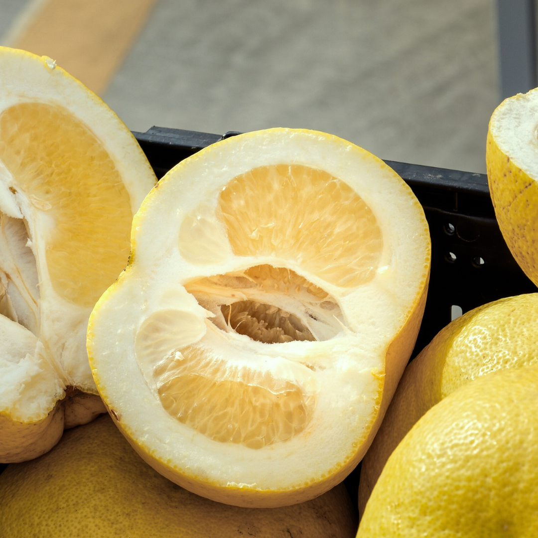 Oro Blanco Grapefruit relatively new hybrid is highly favored for its juicy, sweet flesh without the bitterness commonly associated with other grapefruit varieties. Covered in a thick, easy-to-peel rind that ranges in color from green to yellowish, the Oro Blanco contains a white flesh. It is a popular choice for juicing, eating fresh, or adding to salads for its refreshing taste and nutritional benefits.