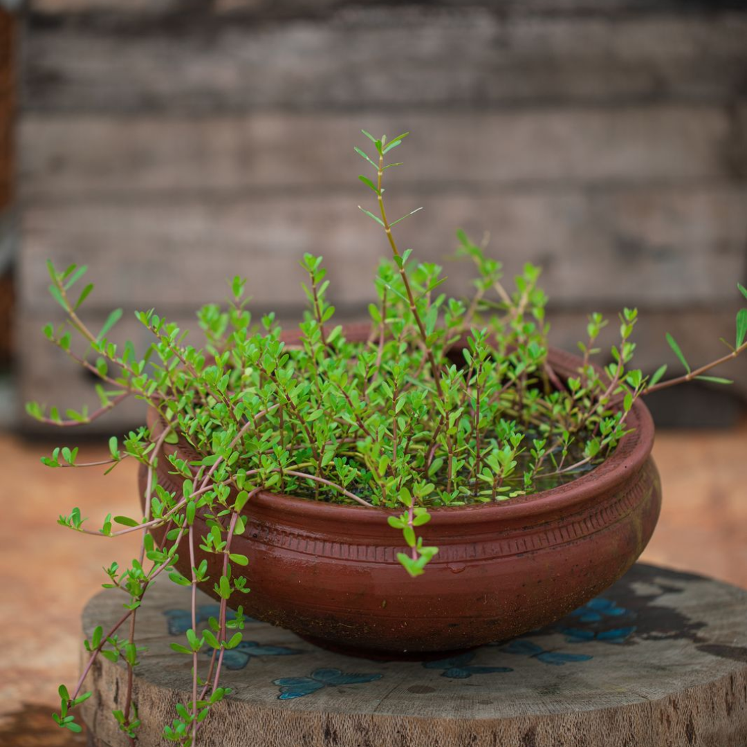 The Brahmi herb has been used since ancient times for its medicinal qualities in the Indian subcontinent. It has helped in relieving anxiety and stress, boosting memory, is rich in antioxidants and helps maintain the immune system. The leaves can be used in various recipes like chutneys or as a garnish for soups. Brahmi adds a touch of beauty with its tiny lavender flowers for your balcony, terrace or garden.